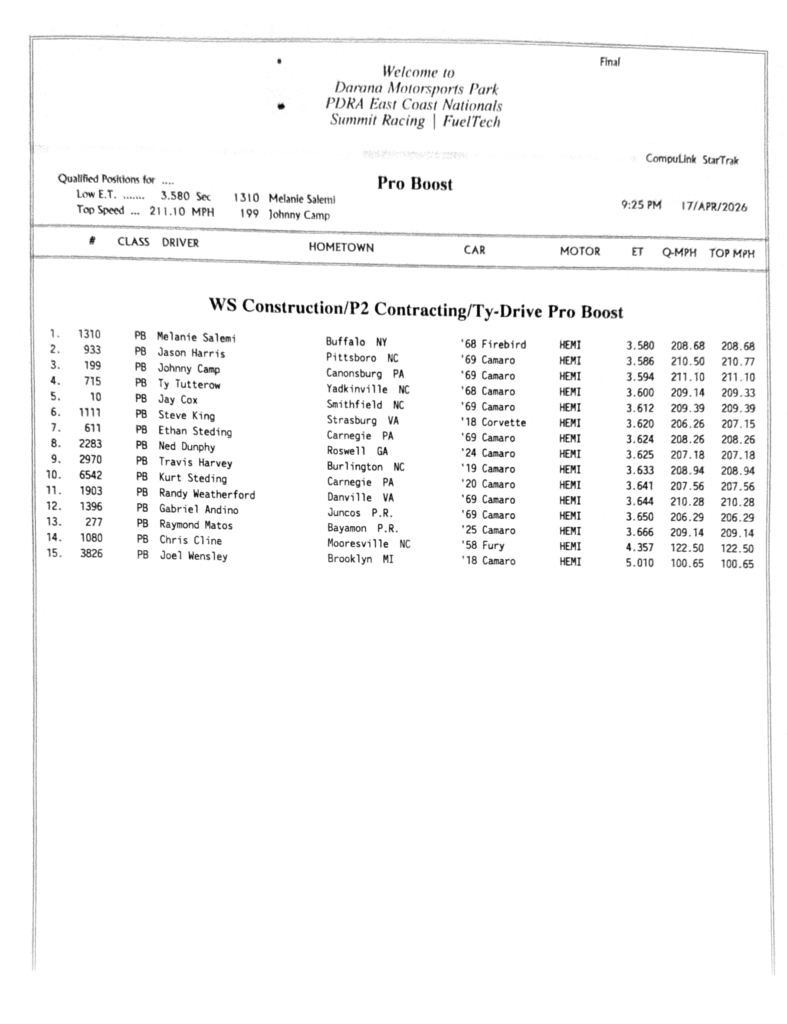 PDRA Race Results