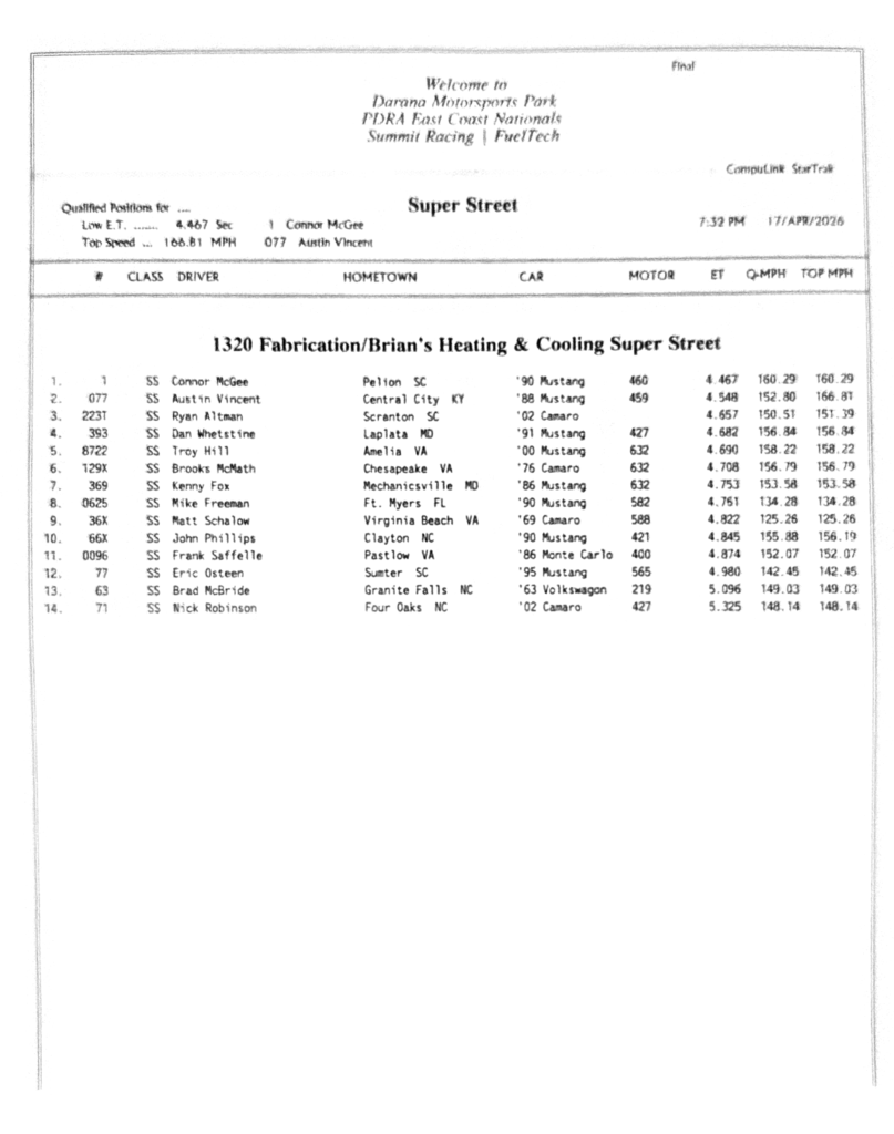 PDRA Race Results