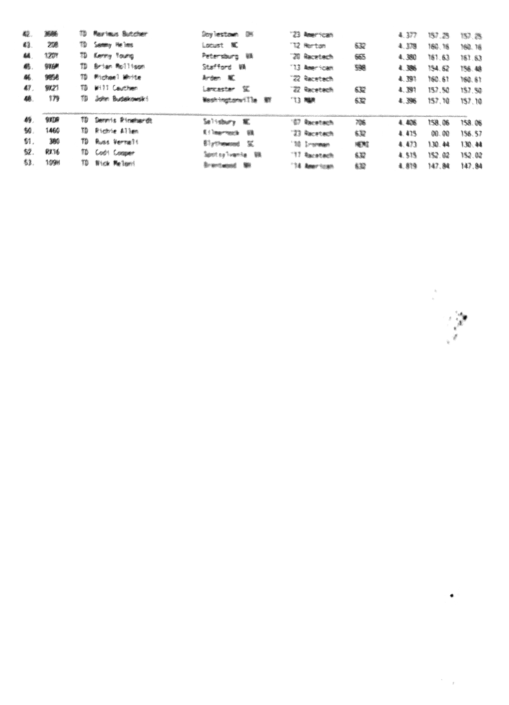 PDRA Race Results