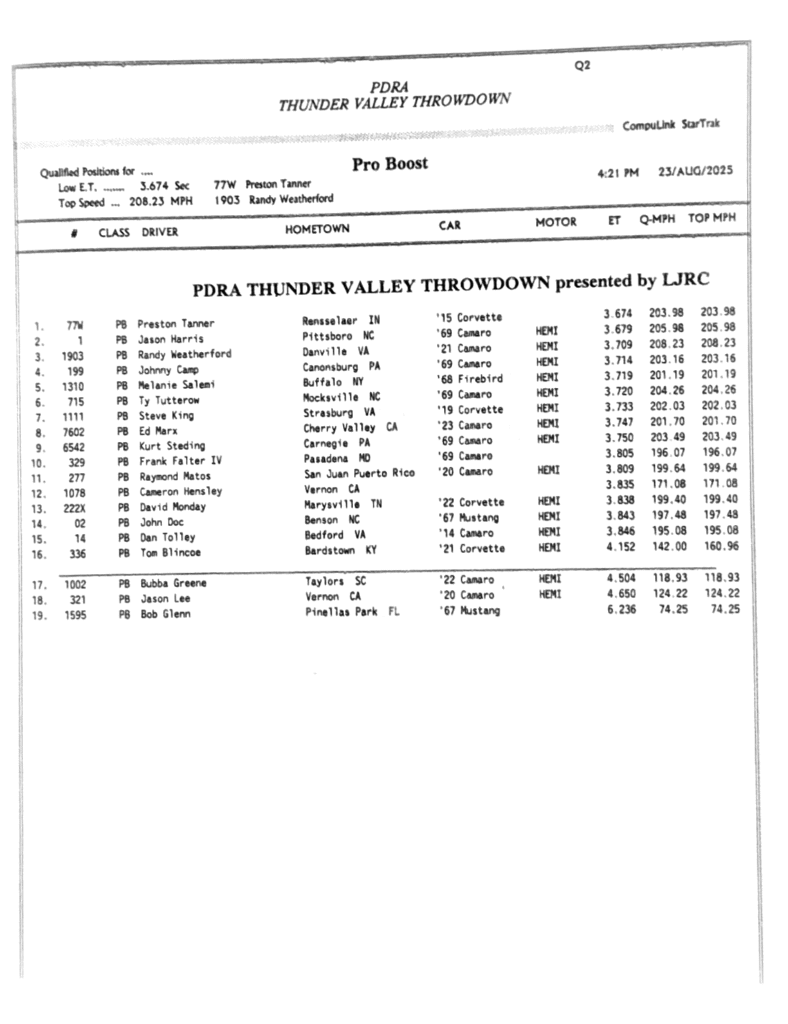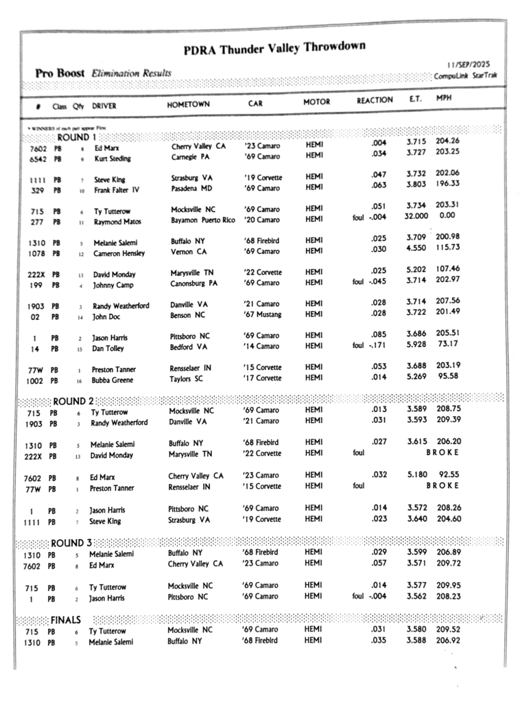 PDRA Race Results